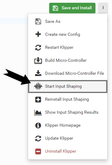 Input shaping is a pretty nice feature in Klipper and is used to resolve the printer's self-resonance and improve print quality. If you want to use input shaping we have also developed a guided wizard. For the wizard to work you need to install a supported accelerometer to your pi as described here. For this, you must first install Input Shaping once by pressing Install Input Shaping on the Klipper Configuration tab and then you can easily and conveniently perform the measurements with the wizard. Our installer automatically adds the required sections. The accelerometer defaults to an ADXL345 chip. If you use a different solution update the configuration accordingly. After installing the input shaping dependency installation, which takes some time, you have to click Restart Klipper, then you can click Start Input Shaping to start it.