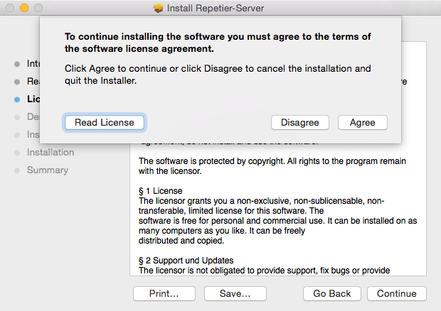 To install a new version of Repetier-Server Pro download the version matching your computer and open a terminal and go to the download directory. There you enter: