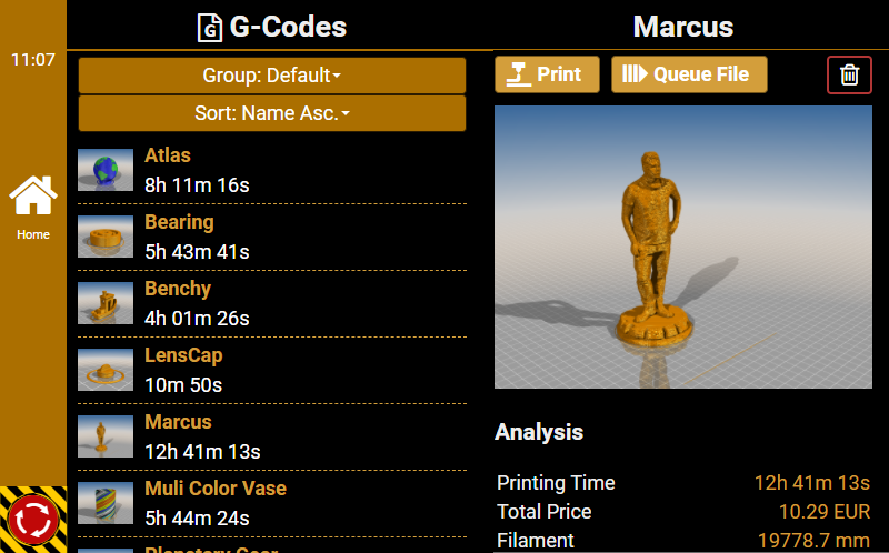 To calculate exact printing times, you should run the Heatup and Cooldown Wizard. This feature measures heating and cooling speed needed for accurate printing time prediction.