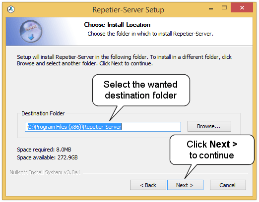 5. Select the destination folder and click Next > to continue.